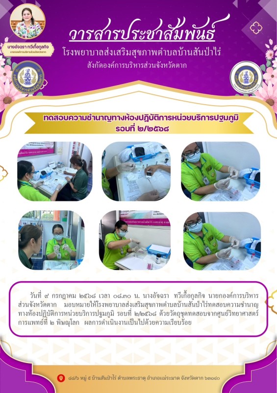 9 ก.ค.68 ช่วงบ่าย รพ.สต.บ้านสันป่าไร่ ทดสอบความชำนาญทางห้องปฏิบัติการหน่วยบริการปฐมภูมิ รอบที่ 2/2568 ด้วยวัตถุชุดทดสอบจากศูนย์วิทยาศาสตร์การแพทย์ที่ 2 พิษณุโลก