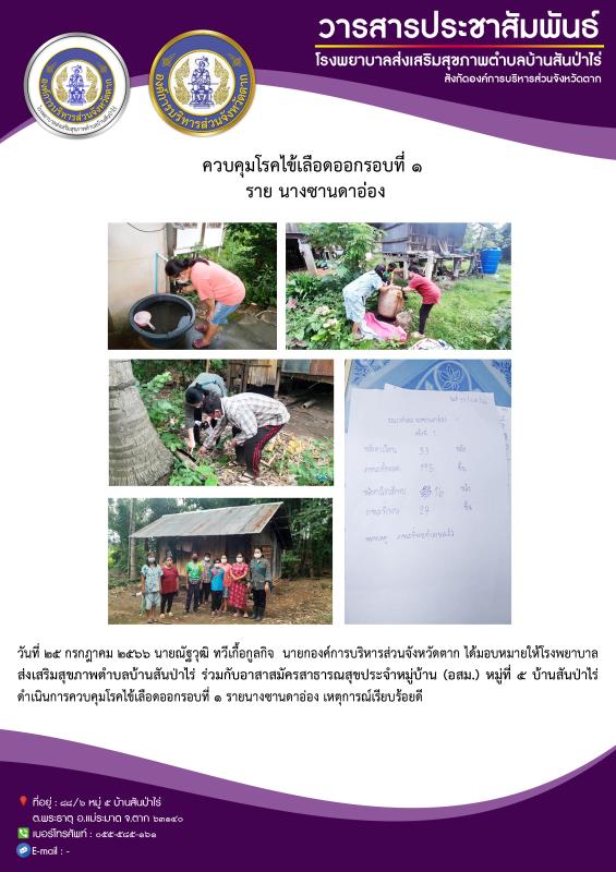 25 ก.ค. 66 จนท.รพ.สต.บ้านสันป่าไร่ร่วมกับอสม.ม.5บ้านสันป่าไร่ ควบคุมโรคไข้เลือดออกรอบที่1เคสนางซานดาอ่อง