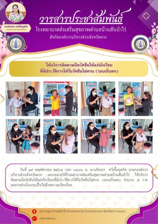19 พ.ย.68 รพ.สต.บ้านสันป่าไร่ ให้บริการติดตามฉีดวัคซีนให้แก่นักเรียนที่มีประวัติการได้รับวัคซีนไม่ครบ (รอบเก็บตก) จำนวน 8 ราย