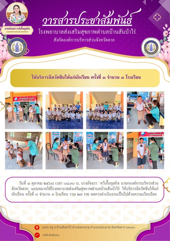 1 ต.ค.68 รพ.สต.บ้านสันป่าไร่ ให้บริการฉีดวัคซีนให้แก่นักเรียน ครั้งที่ 3 จำนวน 3 โรงเรียน รวม 27 ราย