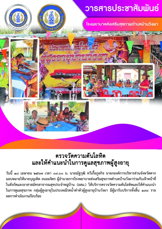 ตรวจวัดความดันโลหิต และให้คำแนะนำการดูแลผู้สูงวัย