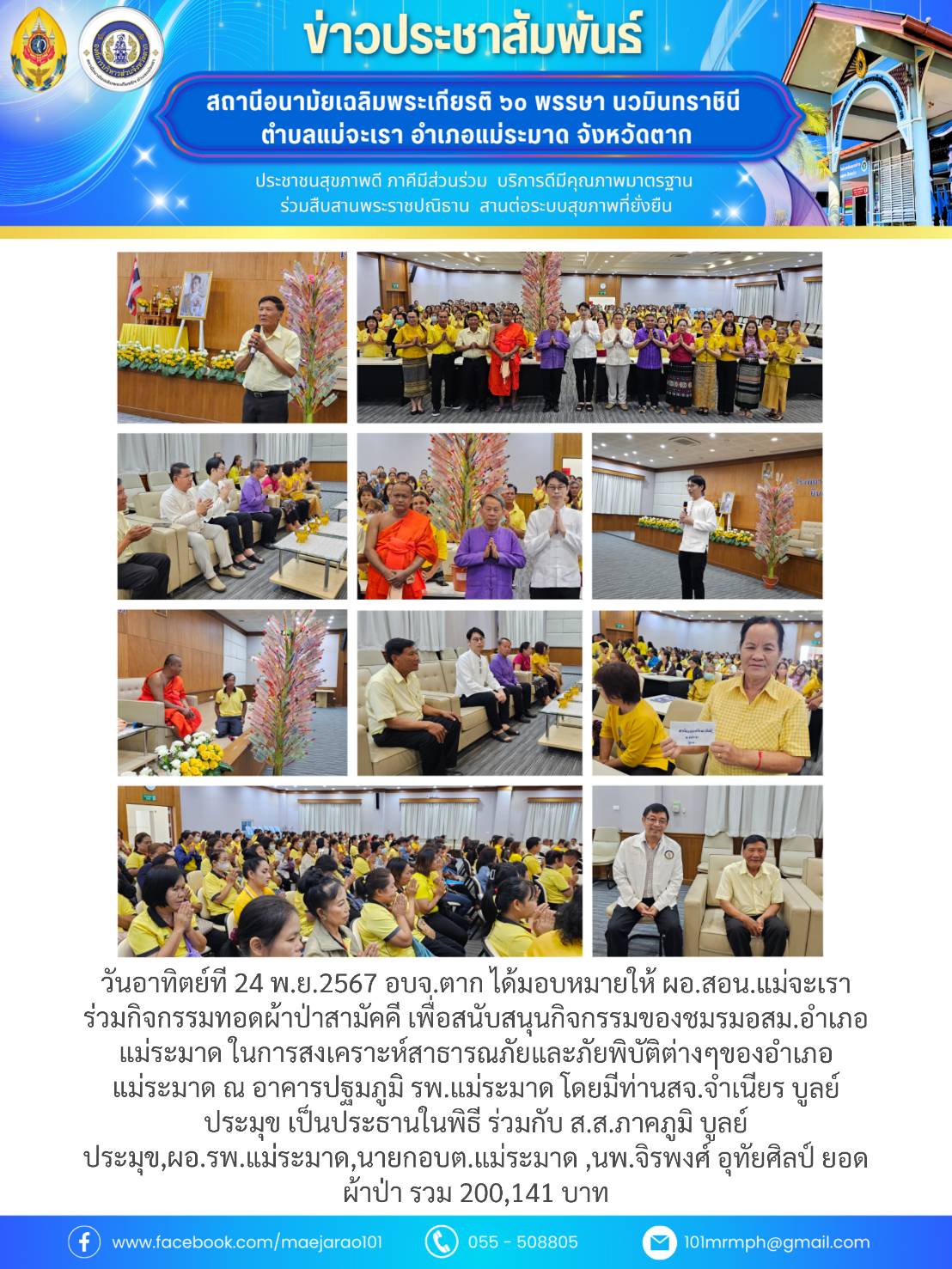 นายบุญฤทธิ์ วงศ์เชวงทรัพย์ ผู้อำนวยการสถานีอนามัยเฉลิมพระเกียรติ 60 พรรษา นวมินทราชินี ตำบลแม่จะเรา