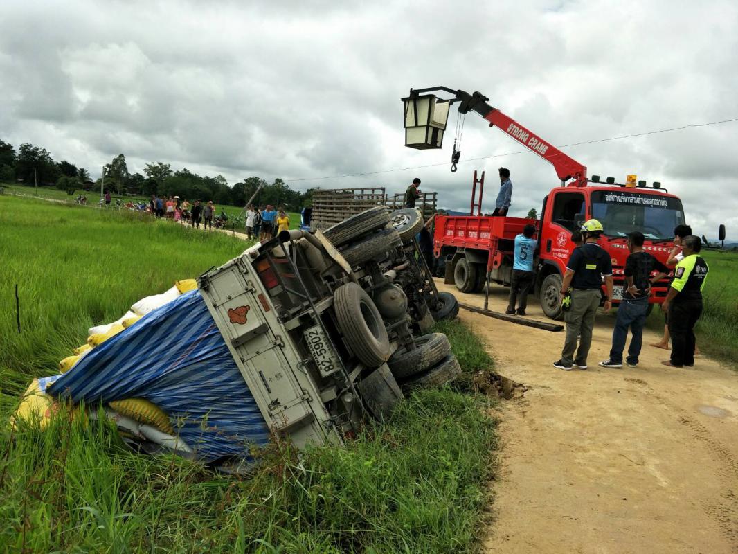 ศูนย์ป้องกันและบรรเทาสาธารณภัย อบจ.ตาก ได้รับวิทยุแจ้งจากศูนย์สั่งการตากสิน(EMS1669) ขอสนับสนุนอุปกรณ์เครื่องตัด-ถ่าง ช่วยเหลือผู้ติดภายในจากอุบัติเหตุรถบรรทุก 6 ล้อ เสียหลักพลิกคว่ำ บริเวณบ้านตลุกกลางทุ่ง ตำบลตลุกกลางทุ่ง จึงได้จัดส่งรถกู้ภัยพร้อมอุปกรณ์ตัดถ่าง และ จนท.ชุดปฏิบัติการกู้ชีพ-กู้ภัย อบจ.ตาก รีบไปยังที่เกิดเหตุ ถึงที่เกิดเหตุได้ให้การช่วยเหลือนำผู้ได้รับบาดเจ็บออกจากตัวรถ โดยมีทีมกู้ชีพมูลนิธิตากร่วมใจสงเคราะห์นำส่งโรงพยบาลสมเด็จพระเจ้าตากสินมหาราช