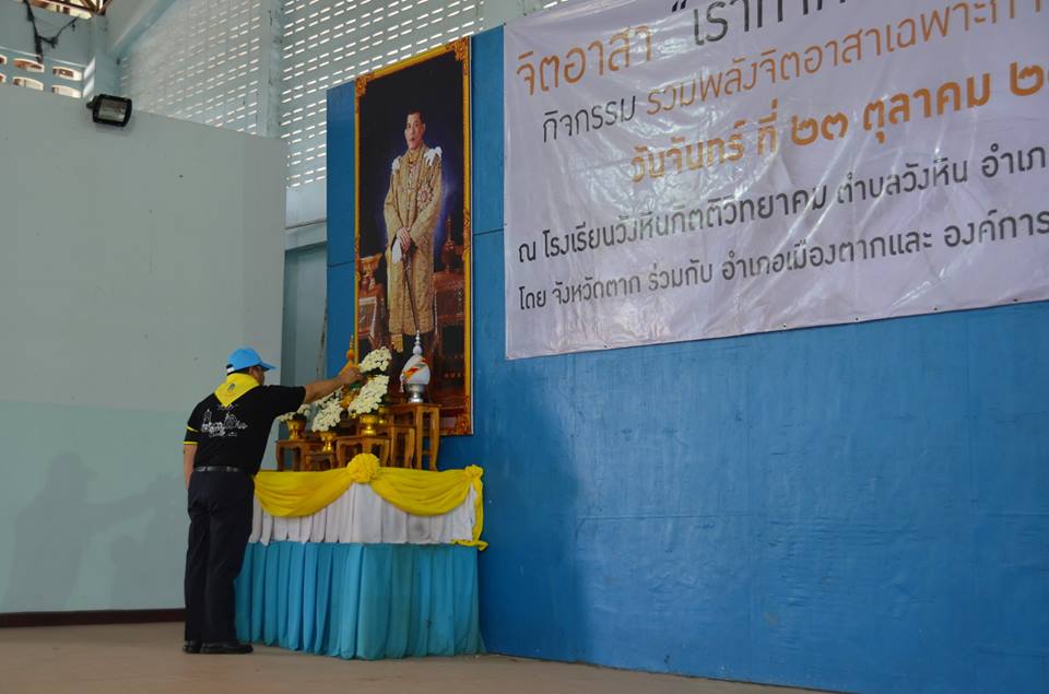 วันที่ 23 ตุลาคม พ.ศ.2560 นายภาคภูมิ บูลย์ประมุข รองนายกองค์การบริหารส่วนจังหวัดตากพร้อมข้าราชการ ลูกจ้างและพนักงานจ้างสังกัด อบจ.ตาก ได้รับมอบหมายจากนายณัฐวุฒิ ทวีเกื้อกูลกิจ นายกองค์การบริหารส่วนจังหวัดตาก เข้าร่วมกิจกรรมรวมพลังแห่งความดีจิตอาสาเฉพาะกิจฯ “ทำความดีด้วยหัวใจ” ถวายเป็นพระราชกุศลแด่พระบาทสมเด็จพระปรมินทรมหาภูมิพลอดุลยเดช บรมนาถบพิตร และสนองพระราโชบายสมเด็จพระเจ้าอยู่หัวมหาวชิราลงกรณ บดินทรเทพยวรางกูร ร่วมกันปรับปรุงภูมิทัศน์บริเวณพื้นที่โดยรอบโรงเรียนวังหินกิตติวิทยาคม ตำบลวังหิน อำเภอเมืองตาก โดยมีนายเจริญฤทธิ์ สงวนสัตย์ ผู้ว่าราชการจังหวัดตาก เป็นประธานเปิดกิจกรรม