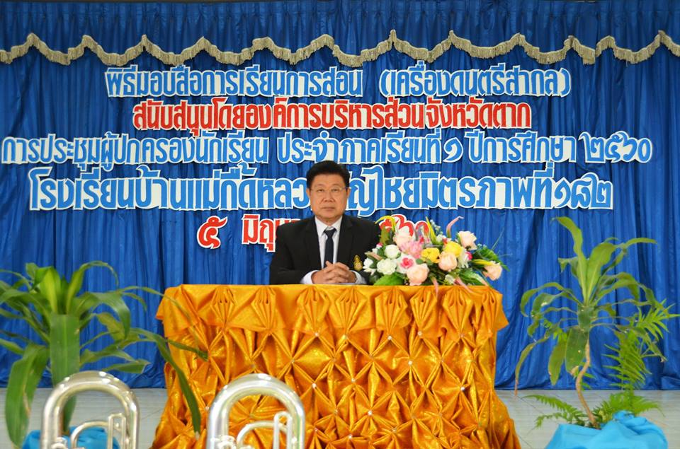 วันที่ 5 มิถุนายน 2560 นายณัฐวุฒิ ทวีเกื้อกูลกิจ นายกองค์การบริหารส่วนจังหวัดตาก เป็นประธานมอบสื่อการเรียนการสอน ประจำปีงบประมาณ พ.ศ.2560 ณ โรงเรียนบ้านแม่กึ๊ดหลวงกัญชัยมิตรภาพที่ 182 อำเภอแม่สอด จังหวัดตาก โดยองค์การบริหารส่วนจังหวัดตากได้มอบเงินอุดหนุนการจัดซื้อสื่อการเรียนการสอนให้แก่ โรงเรียนบ้านแม่กึ๊ดหลวงกัญชัยมิตรภาพที่ 182 (ครุภัณฑ์ดนตรีสากล) เป็นจำนวนเงิน 200,000บาททางโรงเรียนได้สมทบเพิ่มอีก 20,000บาท และองค์การบริหารส่วนจังหวัดตากได้มอบงบประมาณสนับสนุนให้กับโรงเรียนในพื้นที่จังหวัดตากทั้ง 9 อำเภอ จำนวน 65 โรงเรียน รวมงบประมานเงินอุดหนุนทั้งสิ้นในปีนี้ จำนวน 10,184,000 บาท