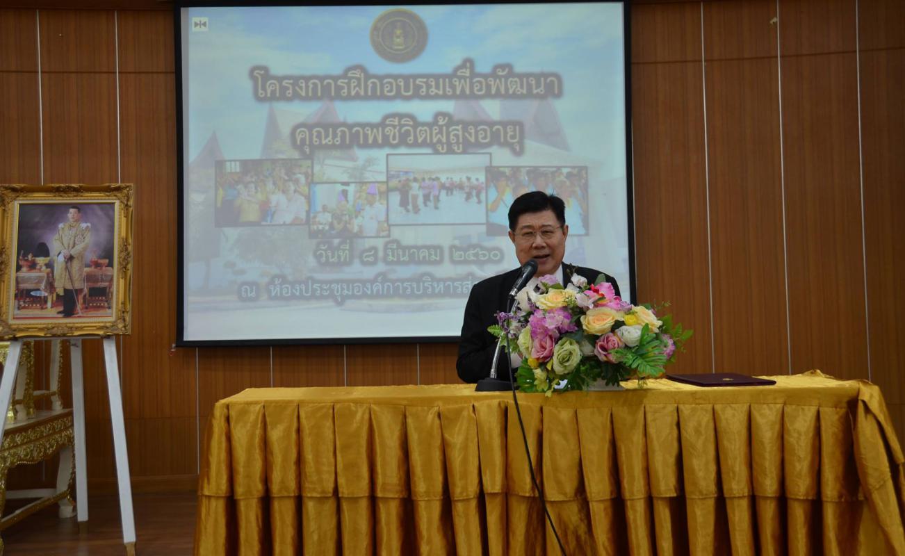 วันที่ 8 มีนาคม 2560 นายณัฐวุฒิ ทวีเกื้อกูลกิจ นายกองค์การบริหารส่วนจังหวัดตาก เป็นประธานเปิดโครงการฝึกอบรมเพื่อพัฒนาคุณภาพชีวิตผู้สูงอายุ ประจำปี 2560 ณ ห้องประชุมองค์การบริหารส่วนจังหวัดตาก โดยมีนายธัชชัย ศรีสวัสดิ์ ปลัดองค์การบริหารส่วนจังหวัดตาก กล่าวรายงาน ได้รับเกียรติจากนางจุฑาทิพย์ คำบุศย์ ข้าราชการบำนาญกระทรวงสาธารณสุข จากสาธารณสุขจังหวัดตาก มาบรรยายในหัวข้อ "การเปลี่ยนแปลงทางร่างกายและจิตใจในวัยสูงอายุ" และในช่วงบ่ายได้รับเกียรติจากนายณัฐวุฒิ สายเปีย ผอ.โรงเรียนผู้สูงอายุเมืองแม่ปะ มาบรรยายในหัวข้อ "การจัดการความเครียดและอารมณ์" วัตถุประสงค์ในการจัดงานครั้งนี้ เพื่อให้ผู้สูงอายุสามารถปรับตัวให้เข้ากับสภาวะการเปลี่ยนแปลงทางร่างกาย จิตใจ ให้ผู้สูงอายุได้รับความรู้ ความเข้าใจเกี่ยวกับเรื่องสุขภาพและสามารถดูแลตนเองได้ในเบื้องต้น มีกลุ่มเป้าหมายเป็นผู้สูงอายุในจังหวัดตาก จำนวน 200 คน