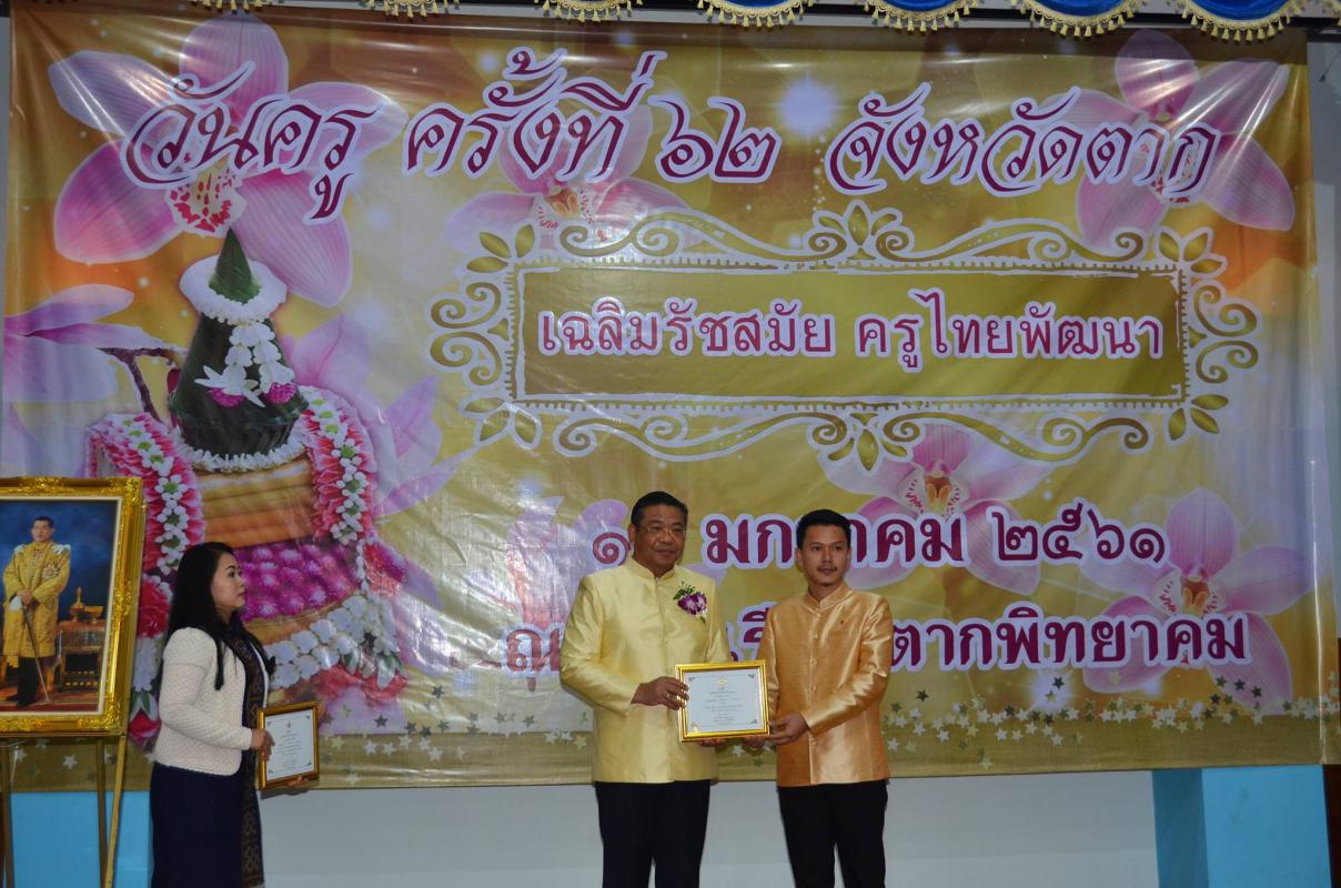 วันที่ 16 มกราคม พ.ศ.2561 นายณัฐวุฒิ ทวีเกื้อกูลกิจ นายกองค์การบริหารส่วนจังหวัดตาก ร่วมงานวันครู ประจำปี 2561 ณ หอประชุมโรงเรียนตากพิทยาคม อำเภอเมือง จังหวัดตาก โดยมีนายเจริญฤทธิ์ สงวนสัตย์ ผู้ว่าราชการจังหวัดตาก เป็นประธานในการประกอบพิธี
