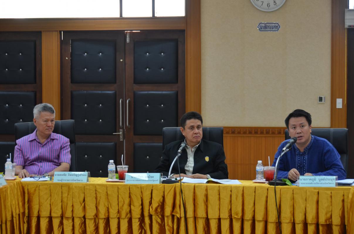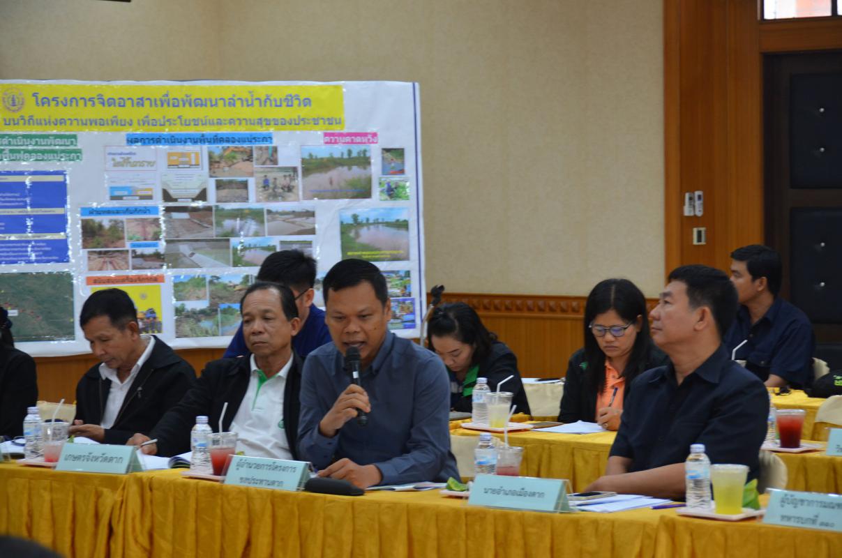 วันที่ (22 มีนาคม พ.ศ.2561) นายภาคภูมิ บูลย์ประมุข รองนายกองค์การบริหารส่วนจังหวัดตากพร้อมคณะผู้บริหาร เจ้าหน้าที่ อบจ.ตาก ร่วมต้อนรับนายกรีฑา สพโชค ผู้ตรวจราชการพิเศษประจำสำนักนายกรัฐมนตรีพร้อมคณะทำงาน ลงพื้นที่คลองแม่ระกา หมู่ 3 บ้านสะแกเครือตำบลวังประจบ อำเภอเมือง จังหวัดตาก และร่วมประชุมคณะทำงานเตรียมความพร้อมและขับเคลื่อนโครงการจิตอาสาเพื่อการพัฒนาลำน้ำกับชีวิตบนวิถีแห่งความพอเพียง เพื่อประโยชน์และความสุขของประชาชนร่วมกับส่วนราชการที่เกี่ยวข้องและประชาชนชาวตำบลวังประจบ และตำบลโป่งแดง ณ ห้องประชุมองค์การบริหารส่วนจังหวัดตาก