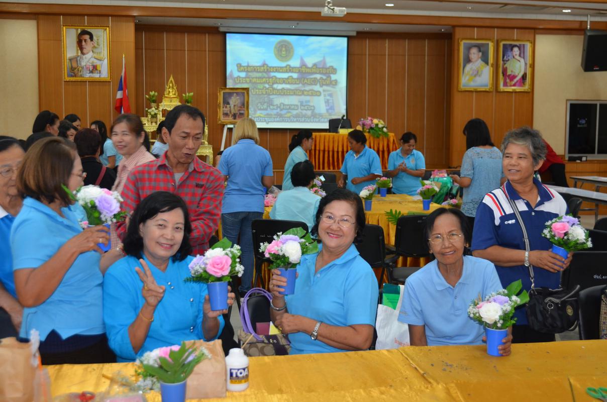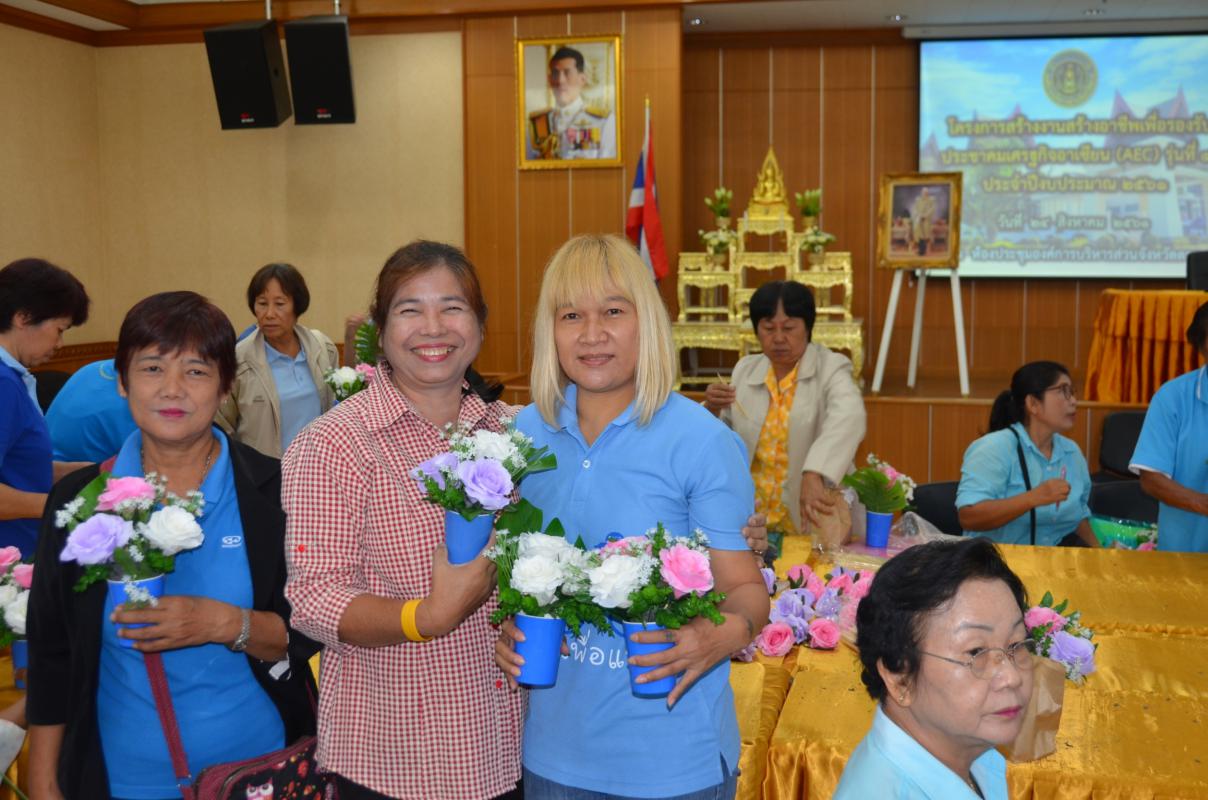 วันที่ 24 สิงหาคม พ.ศ.2561 นางวันทนา วิรัชเกษม รองปลัดองค์การบริหารส่วนจังหวัดตาก ได้รับมอบหมายจากนายณัฐวุฒิ ทวีเกื้อกูลกิจ นายกองค์การบริหารส่วนจังหวัดตาก เป็นประธานเปิดโครงการสร้างงานสร้างอาชีพเพื่อรองรับประชาคมเศรษฐกิจอาเซียน ( AEC ) รุ่นที่ 4 ณ ห้องประชุมองค์การบริหารส่วนจังหวัดตาก โดยมีนางบุญถี สอนเจริญทรัพย์ หัวหน้าฝ่ายงบประมาณและพัฒนาเศรษฐกิจ กองแผนและงบประมาณ กล่าวรายงาน และได้รับเกียรติจากคุณชัยพฤกษ์ ฝึกฝน และทีมงาน มาเป็นวิทยากรบรรยายให้ความรู้ในหลักสูตรการจับจีบผ้าและการจัดดอกไม้ วัตถุประสงค์ของโครงการ เพื่อส่งเสริมการสร้างงานสร้างอาชีพให้กับประชาชนและพัฒนาความรู้ ทักษะในการประกอบอาชีพ มีกลุ่มเป้าหมายเป็นประชาชนจากอำเภอเมืองตาก อำเภอบ้านตาก และอำเภอสามเงา เข้าร่วมจำนวน 100 คน
