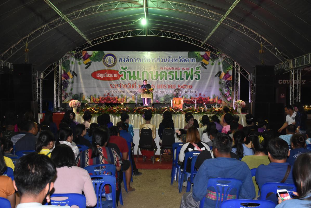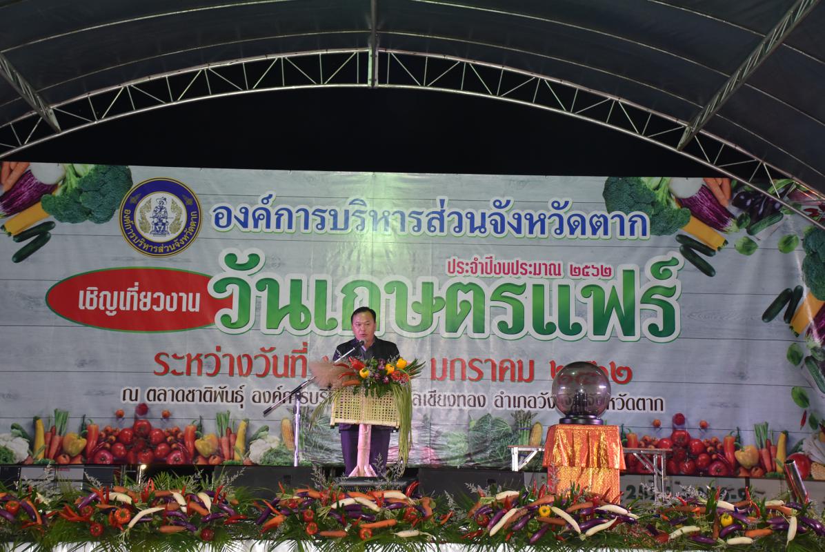 เมื่อวันที่ 25 มกราคม พ.ศ.2562 นายชัชวาลย์ แสงจ๊า รองนายกองค์การบริหารส่วนจังหวัดตาก ได้รับมอบหมายจากนายณัฐวุฒิ ทวีเกื้อกูลกิจ นายกองค์การบริหารส่วนจังหวัดตาก เป็นประธานในพิธีเปิดงานวันเกษตรแฟร์ ประจำปีงบประมาณ พ.ศ. 2562 ซึ่งมีกำหนดการจัดงานระหว่างวันที่ 24 - 26 มกราคม 2562 ณ ตลาดชาติพันธุ์ องค์การบริหารส่วนตำบลเชียงทอง อำเภอวังเจ้า จังหวัดตาก วัตถุประสงค์ในการจัดงานครั้งนี้ เพื่อเผยแพร่ความรู้วิชาการทางด้านการเกษตร การแปรรูปผลผลิตทางการเกษตรและส่งเสริมการตลาดผลผลิตทางการเกษตร ซึ่งภายในงานมีกิจกรรมต่างๆ ประกอบด้วย การจัดนิทรรศการให้ความรู้ด้านเศรษฐกิจพอเพียง การประกวดผลผลิตทางการเกษตร การประกวดการประกวดส้มตำลีลา การประกวดปลาทับทิมเผาเกลือ และการประกวดธิดาเกษตรแฟร์ โดยองค์การบริหารส่วนจังหวัดตากได้สนับสนุนงบประมาณ จำนวน 200,000 บาท และฝ่ายประชาสัมพันธ์ องค์การบริหารส่วนจังหวัดตาก ได้นำกิจกรรมโครงการ “ประชาสัมพันธ์เคลื่อนที่ อบจ.ตาก พบประชาชน” ออกหน่วยเผยแพร่ประชาสัมพันธ์ข้อมูลข่าวสาร ให้กับประชาชน ในการจัดงานครั้งนี้ด้วย