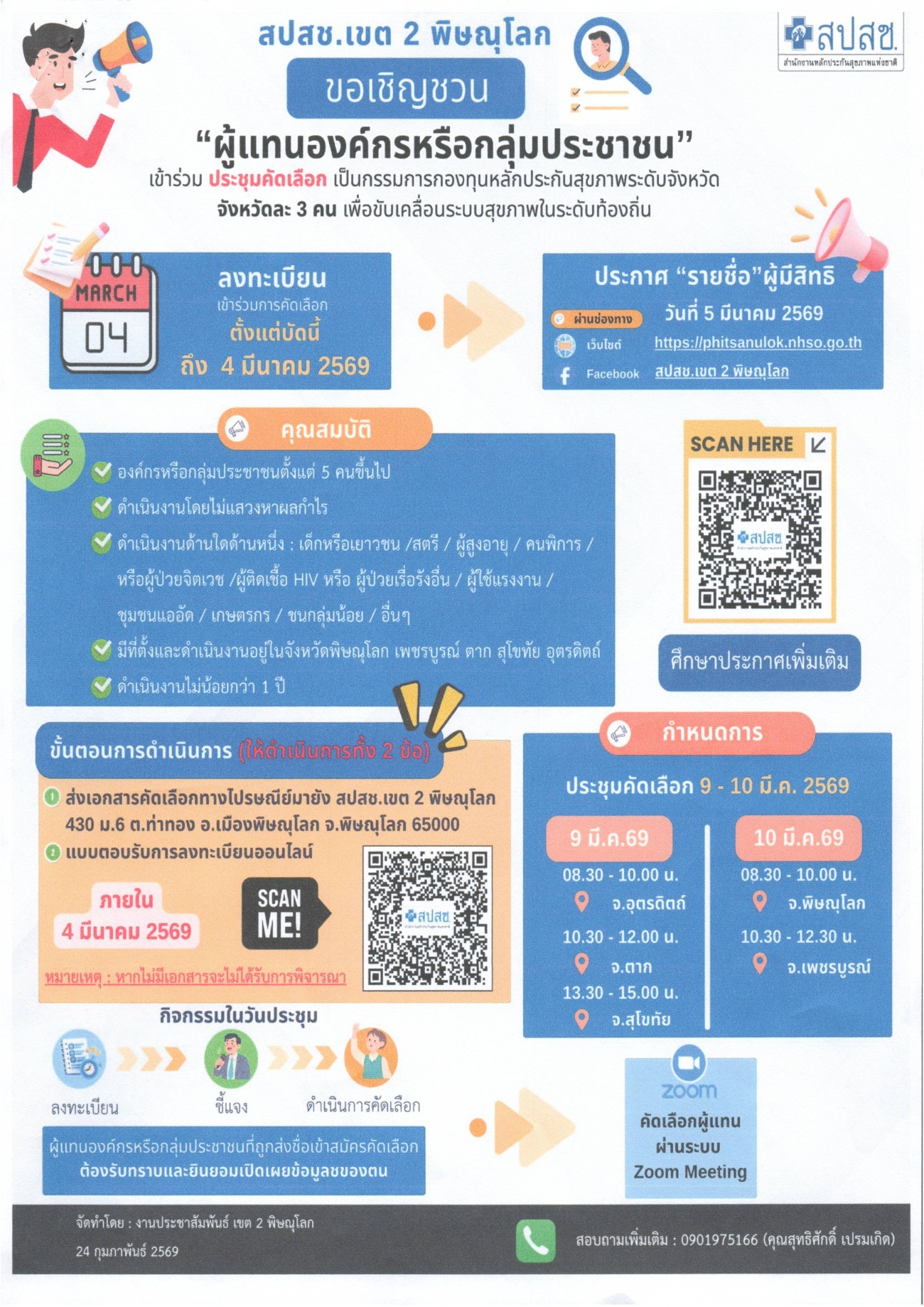 ประชาสัมพันธ์เชิญชวนให้องค์กรหรือกลุ่มประชาชนแจ้งความจำนง และส่งรายชื่อผู้แทนคัดเลือกกันเอง