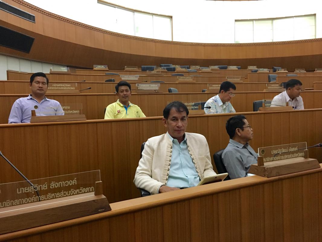 เมื่อวันที่ 11 กรกฎาคม 2559 องค์การบริหารส่วนจังหวัดตาก จัดทำโครงการฝึกอบรมเพื่อพัฒนาศักยภาพการปฏิบัติงาน ประธานสภาองค์การบริหารส่วนจังหวัดตาก สมาชิกสภาองค์การบริหารส่วนจังหวัดตาก ผู้บริหารองค์การบริหารส่วนจังหวัดตาก และเจ้าหน้าที่องค์การบริหารส่วนจังหวัดตาก หัวข้อ "การพัฒนาท้องถิ่นโดยการบริหารจัดการเพื่อป้องกันการทุจริตในภาครัฐ". ระหว่างวันที่ 11-15 กรกฎาคม 2559 ณ ห้องประชุมองค์การบริหารส่วนจังหวัดตาก