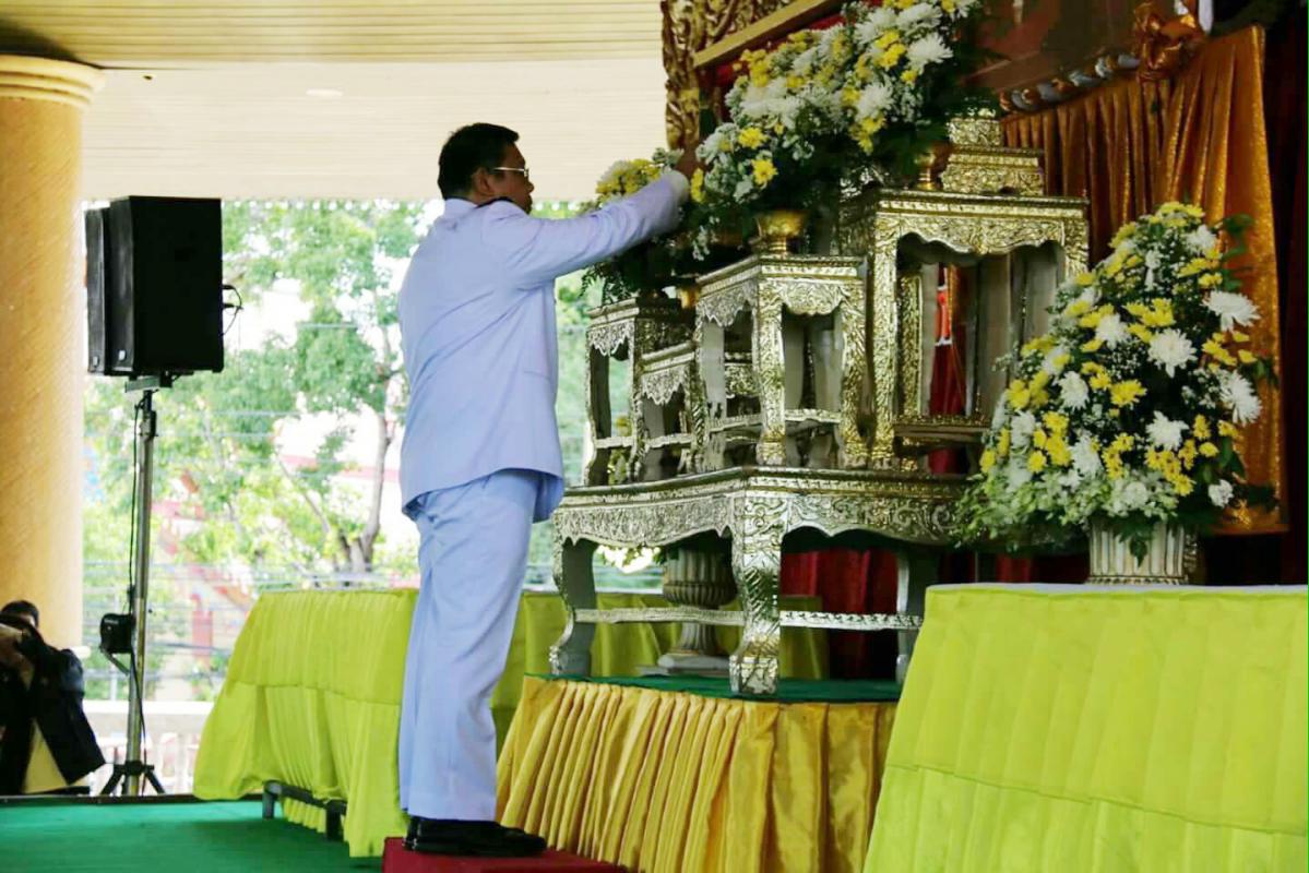 นายธัชชัย ศรีสวัสดิ์ ปลัดองค์การบริหารส่วนจังหวัดตาก พร้อมด้วยข้าราชการ ลูกจ้าง และพนักงานจ้างในสังกัด ได้รับมอบหมายจาก นายณัฐวุฒิ ทวีเกื้อกูลกิจ นายกองค์การบริหารส่วนจังหวัดตาก เข้าร่วมพิธีในภาคเช้าของวันนี้ ได้แก่พิธีทางศาสนามหามงคล 5 ศาสนา เฉลิมพระเกียรติสมเด็จพระบรมโอรสาธิราชฯ สยามมกุฎราชกุมาร เนื่องในโอกาสเจริญพระชนมายุ 64 พรรษา ได้แก่ ศาสนาพุทธ ศาสนาอิสลาม ศาสนาคริสต์ ศาสนาพราหมณ์-ฮินดู และศาสนาซิกข์ และพิธีถวายพระพรชัยมงคล และลงนามถวายพระพร โดยมีนายเจริญฤทธิ์ สงวนสัตย์ ผู้ว่าราชการจังหวัดตาก เป็นประธานในพิธี