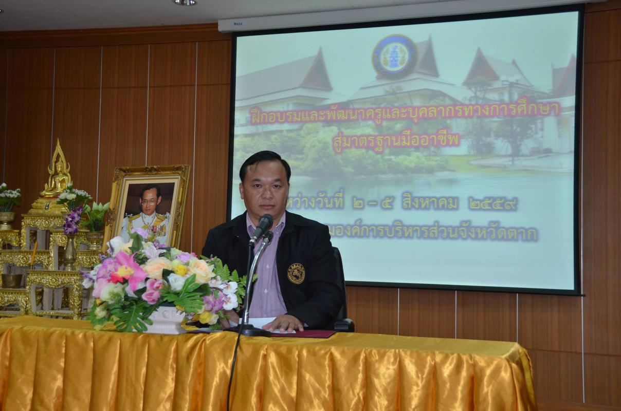 วันที 2 สิงหาคม 2559 นายชัชวาลย์ แสงจ้า เป็นประธานในพิธีเปิดโครงการฝึกอบรมและพัฒนาครูและบุคลากรทางการศึกษาสู่มาตราฐานมืออาชีพ ประจำปีงบประมาณ พ.ศ. 2559 พร้อมด้วยคณะผู้บริหาร และหัวหน้าส่วนราชการในสังกัดโดยมีนายณัฐวัฒน์ ชัยสงค์ สมาชิกองค์การบริหารส่วนจังหวัดตาก กล่าวรายงาน กำหนดการอบรมในภาคเช้าได้รับเกียรติจาก ดร.สุรเสน ทั่งทอง ผู้อำนวยการวิทยาลัยชุมชนตาก เป็นวิทยากรบรรยายหัวข้อเรื่อง "แนวทางการฝึกฝนและพัฒนาตนเองเพื่อก้าวเข้าสู่ความเป็นครูมืออาชีพ" และภาคบ่ายได้รับเกียรติจาก นางจินดา เกษวงศ์รอด ครูเชี่ยวชาญ โรงเรียนบ้านตากประถมวิทยา เป็นวิทยากรบรรยายเรื่อง "การพัฒนาคุณภาพด้านการศึกษา" โดยโครงการนี้จัดอบรมและเดินทางไปศึกษาดูงานที่จังหวัดนครราชสีมา ระหว่างวันนี้ 2-5 สิงหาคม พ.ศ. 2559 เพื่อส่งเสริมให้ครูและบุคลากรทางการศึกษาในจังหวัดตาก มีความรู้ความเข้าใจและมีเทคนิคการจัดการเรียนการสอนอย่างเป็นมืออาชีพ โดยมีครูและบุคลากรทางการศึกษาจากสำนักงานเขตพื้นที่การศึกษาประถมศึกษาเขต 1 และ เขต 2 สังกัดองค์กรปกครองส่วนท้องถิ่นและโรงเรียนเอกชนในจังหวัดตากเข้าร่วมโครงการจำนวน 90คน