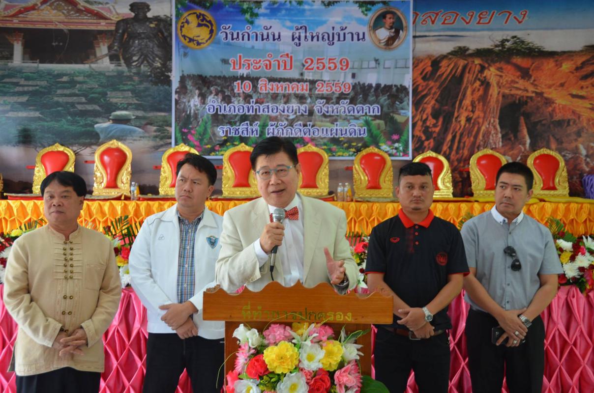 วันที่ 10 สิงหาคม 2559 นายณัฐวุฒิ ทวีเกื้อกูลกิจ นายกองค์การบริหารส่วนจังหวัดตากพร้อมคณะผู้บริหารและคณะสมาชิกสภา อบจ.ตาก เดินทางไปที่ว่าการอำเภอท่าสองยางที่ว่าการอำเภอแม่ระมาดและที่ว่าการอำเภอแม่สอด ร่วมเป็นเกียรติในพิธีเปิด "วันกำนัน ผู้ใหญ่บ้าน" ประจำปี 2559 และพบปะหัวหน้าส่วนราชการ กำนัน ผู้ใหญ่บ้าน แพทย์ประจำตำบล สารวัตรกำนัน และผู้ช่วยผู้ใหญ่บ้านในพื้นที่ทั้ง 3 อำเภอ พร้อมมอบงบประมาณสนับสนุนเพื่อดำเนินโครงการส่งเสริมพัฒนาศักยภาพผู้นำท้องที่/ท้องถิ่น ผู้นำชุมชน กลุ่มพลังมวลชน องค์กรต่างๆและประชาชน ประจำปีงบประมาณ พ.ศ. 2559 รุ่นที่ 6-14