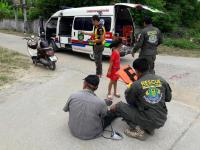 ศูนย์ป้องกันและบรรเทาสาธารณภัย อบจ.ตาก ได้รับโทรศัพท์แจ้งจากประชาชนมีอุบัติเหตุรถจักรยานยนต์เสียหลักล้มเองมีผู้ได้รับบาดเจ็บ บริเวณหลังสถานีขนส่งผู้โดยสาร จ.ตาก ตำบลน้ำรึม จึงได้แจ้งศูนย์"ตากสิน"(EMS1669) ขอออกตรวจสอบ และจัดส่งรถพยาบาลฉุกเฉินพร้อมเจ้าหน้าที่ชุดปฏิบัติการกู้ชีพ-กู้ภัย อบจ.ตาก ออกให้การช่วยเหลือ ถึงที่เกิดเหตุพบชาย 1 ราย อายุ 68 ปี ได้รับบาดเจ็บมีแผลถลอกตามร่างกายและเจ็บบริเวณหัวเข่า จึงช่วยเหลือปฐมพยาบาลบาดแผลเบื้องต้นและใส่เฝือกดามเข่า ทำการตรวจวัดค่าสัญญาณชีพต่างๆ แจ้งอาการไปยังศูนย์"ตากสิน"(EMS1669) จากนั้นนำส่งโรงพยาบาลสมเด็จพระเจ้าตากสินมหาราช เพื่อทำการตรวจรักษาต่อไป