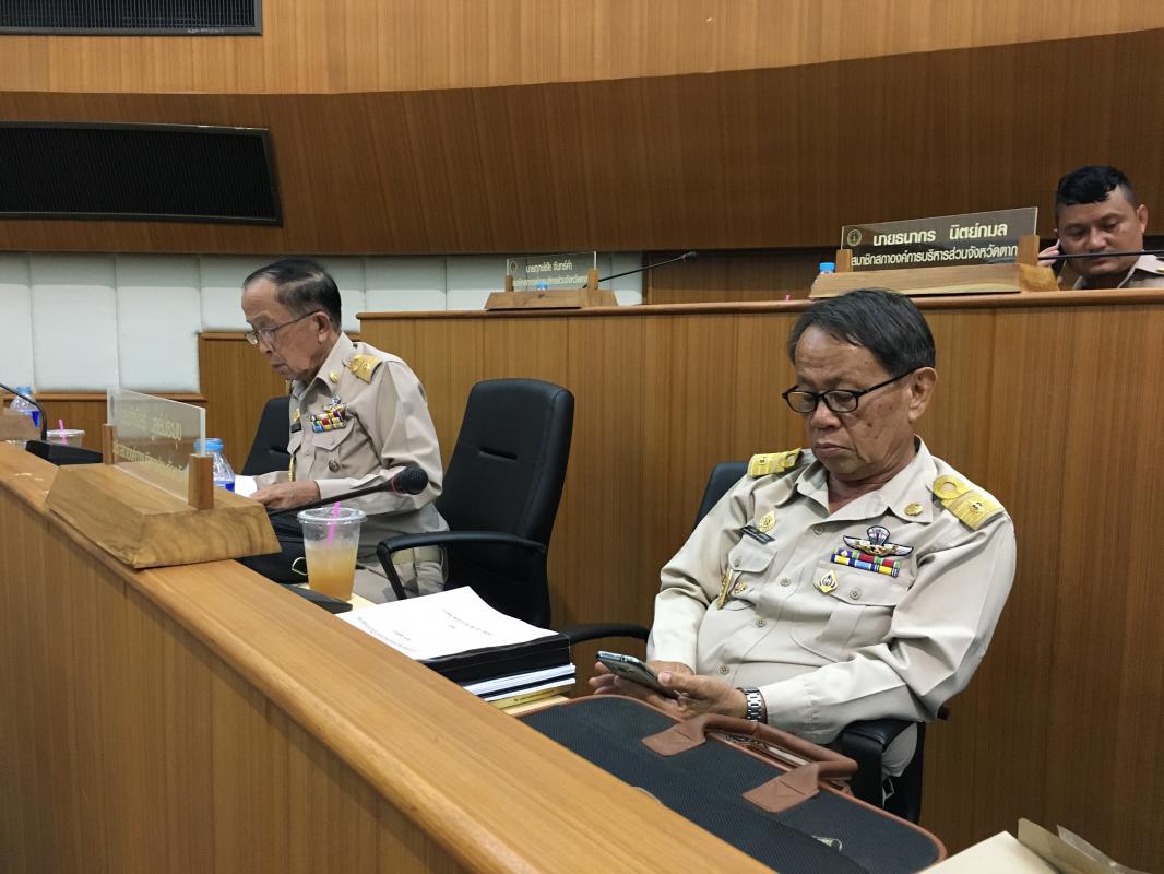 การประชุมสภาองค์การบริหารส่วนจังหวัดตาก สมัยสามัญ สมัยที่ 2 ครั้งที่ 1 เมื่อวันที่ 11 สิงหาคม 2559 และครั้งที่ 2 เมื่อวันที่ 15 สิงหาคม 2559 เพื่อพิจารณาร่างข้อบัญญัติงบประมาณรายจ่าย ประจำปี 2560 ได้ดำเนินการเสร็จสิ้นแล้ว โดยสภาลงมติให้ความเห็นชอบในร่างข้อบัญญัติดังกล่าว และกระบวนการต่อไปคือ การนำเสนอให้ผู้ว่าราชการจังหวัดตาก พิจารณาลงนามอนุมัติ เพื่อตราเป็นข้อบัญญัติอย่างสมบูรณ์และประกาศใช้ต่อไป