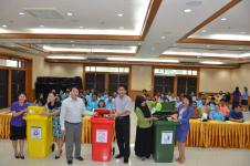 วันนี้ (18 สิงหาคม 2559) นายภาคภูมิ บูลย์ประมุข รองนายกองค์การบริหารส่วนจังหวัดตาก เป็นประธานเปิดโครงการบริหารจัดการขยะมูลฝอยและของเสียอันตราย ประจำปีงบประมาณ พ.ศ. ๒๕๕๙ โดยมีนางสาวปาริชาติ หิรัญรัตน์ ผู้อำนวยการกองแผนและงบประมาณ กล่าวรายงาน โดยได้รับเกียรติจากนางสาวมารียา กฤษดากำธร นักวิชาการสิ่งแวดล้อมปฏิบัติการ วิทยากรจากสำนักงานทรัพยากรธรรมชาติและสิ่งแวดล้อมจังหวัดตาก ให้การบรรยายเรื่อง "สถานการณ์ขยะในจังหวัดตากและแนวทางการคัดแยกขยะมูลฝอยทั่วไปและของเสียอันตราย" และนางสำราญ แสนศิลา นักวิชาการเกษตรชำนาญการพิเศษ วิทยากรจากสำนักงานพัฒนาที่ดินจังหวัดตาก ให้การบรรยายเรื่อง "การทำปุ๋ยหมักอินทรีย์ ชีวภาพ" โดยมีบุคลากรสังกัดองค์การบริหารส่วนจังหวัดตาก เข้าร่วมอบรมจำนวน 60 คน เพื่อเป็นจุดเริ่มต้นภายในองค์กรในการคัดแยกประเภทขยะ ได้แก่ ขยะทั่วไป ขยะรีไซเคิล และขยะของเสียอันตราย เพื่อช่วยลดต้นทุนในการบริหารจัดการขยะ และเป็นแบบอย่างที่ดีให้กับบุคคลอื่นๆ และนำกลับไปทำภายในครอบครัว ชุมชนของเราต่อไปได้ ***ช่วยกันคนละไม้คนละมือ เรื่องขยะ เป็นเรื่องของเราทุกคน*** เริ่มต้นที่ตัวเรา ครอบครัวเรา ที่ทำงานของเรา ชุมชนของเรา เพียงเท่านี้ก็ช่วยให้ประเทศของเราสะอาดสิ่งแวดล้อมปลอดภัยจากมลพิษ สร้างรายได้ สร้างประโยชน์จากขยะร่วมกัน