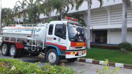 สำนักการช่าง จัดรถบรรทุกน้ำจำนวน 3 คัน พร้อมเจ้าหน้าที่นำน้ำประปาจากการประปาส่วนภูมิภาคตากนำมาเติมยังสระว่ายน้ำ อบจ.ตาก หลังดำเนินการซ่อมแซมเปลี่ยนกระเบื้องปูพื้นใหม่ทั้งหมด