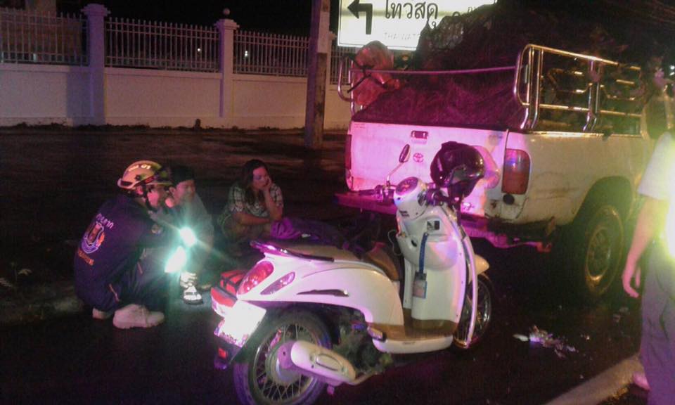 ลูกข่ายศูนย์ป้องกันและบรรเทาสาธารณภัย อบจ.ตาก แจ้งพบเห็นเหตุรถจักรยานยนต์ชนท้ายรถกระบะ บนถนนจรดวิถีถ่องบริเวณหน้าสำนักงานสรรพกร จ.ตาก ฝั่งขาเข้าเมือง จึงได้จัดส่งรถพยาบาลฉุกเฉินพร้อมเจ้าหน้าที่ชุดปฏิบัติการกู้ชีพ-กู้ภัย อบจ.ตาก ออกตรวจสอบ ถึงที่เกิดเหตุพบรถจักรยานยนต์จอดนิ่งอยู่ท้ายรถกระบะได้รับความเสียหาย และมีผู้ได้รับบาดเจ็บเป็นชาย อายุประมาณ 17 ปี บาดเจ็บเล็กน้อยมีแผลถลอกตามร่างกายไม่ประสงค์ไปโรงพยาบาล ให้การช่วยเหลือปฐมพยาบาลและอำนวยการจราจร