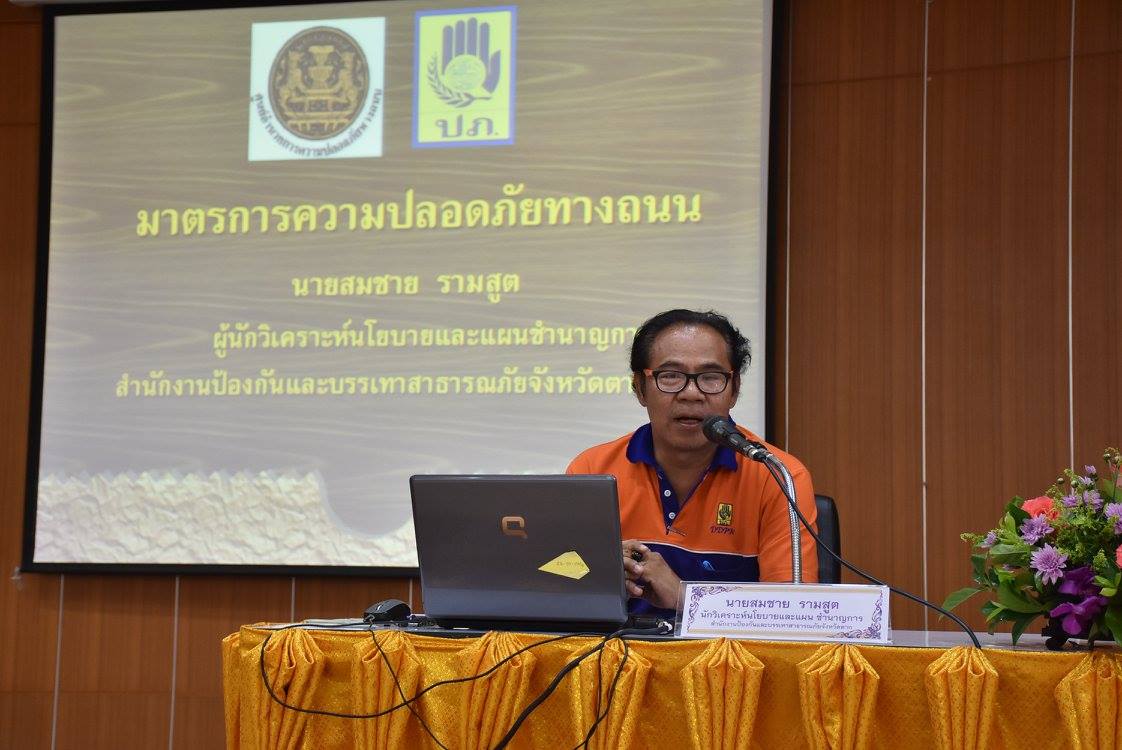 เพื่อฝึกอบรมความรู้ความเข้าใจด้านการป้องกันและระงับภัยต่างๆ สามารถแก้ไขปัญหาเฉพาะหน้าได้เมื่อเกิดภัยในชุมชนหรือหมู่บ้าน รวมทั้งสร้างวัฒนธรรมความปลอดภัย (Safety Culture) ให้คนไทยมีจิตสำนึกในการเรียนรู้ด้านความปลอดภัยทางถนนอย่างยั่งยืน และสามารถถ่ายทอดความรู้ให้แก่ประชาชนและเครือข่ายด้านการป้องกันและบรรเทาสาธารณภัยได้ จัดการอบรมระหว่างวันที่ 31 สิงหาคม 2559 – 2 กันยายน 2559 ณ ห้องประชุมองค์การบริหารส่วนจังหวัดตาก และศึกษาดูงาน ณ สนามฝึกฐานทัพเรือสัตหีบ กองเรือยุทธการ อำเภอสัตหีบ จังหวัดชลบุรี ซึ่งมีกลุ่มเป้าหมายผู้เข้ารับการอบรม คือ ผู้นำชุมชน / หมู่บ้าน อาสาสมัครป้องกันภัยฝ่ายพลเรือน (อปพร.) อาสาสมัครสาธารณสุขประจำหมู่บ้าน (อสม.) อาสาสมัครตำรวจบ้าน (อสตร.) และผู้มีจิตอาสาจากชุมชน โดยได้รับเกียรติจากนายภาคภูมิ บูลย์ประมุข รองนายกองค์การบริหารส่วนจังหวัดตาก เป็นประธานในการเปิดโครงการ