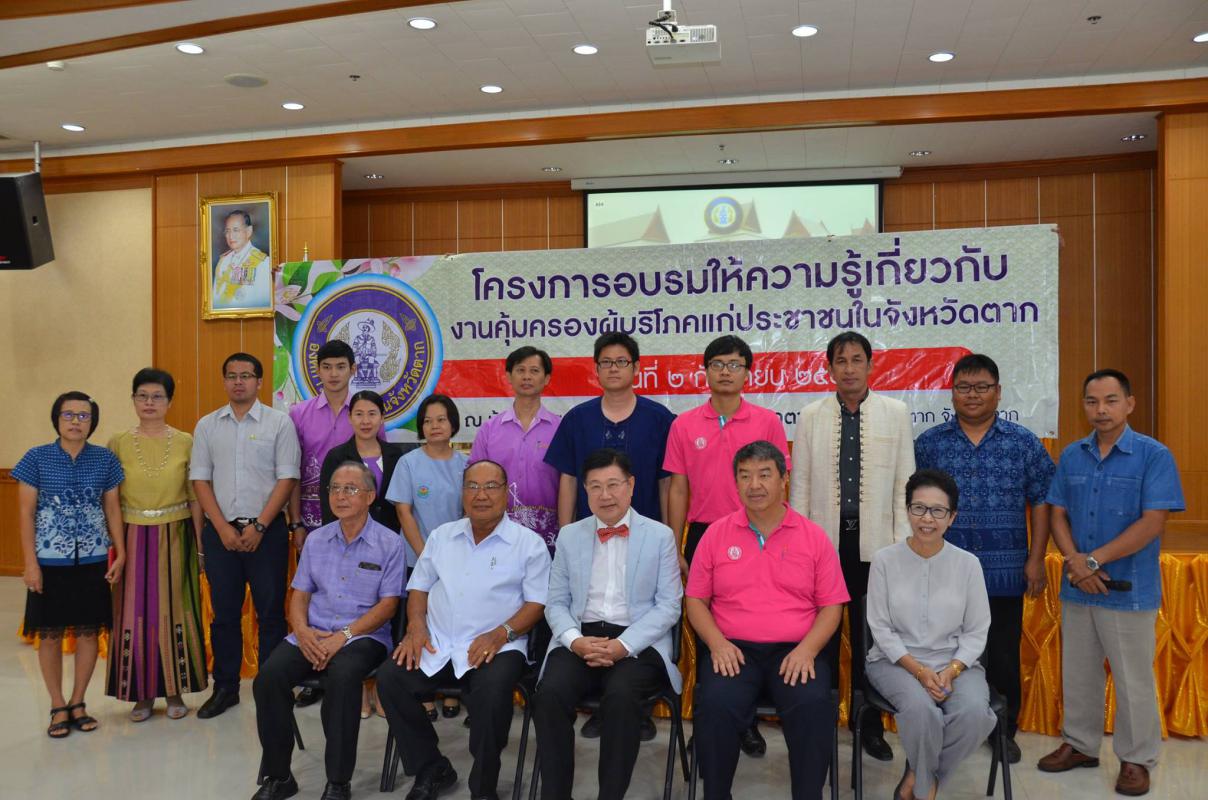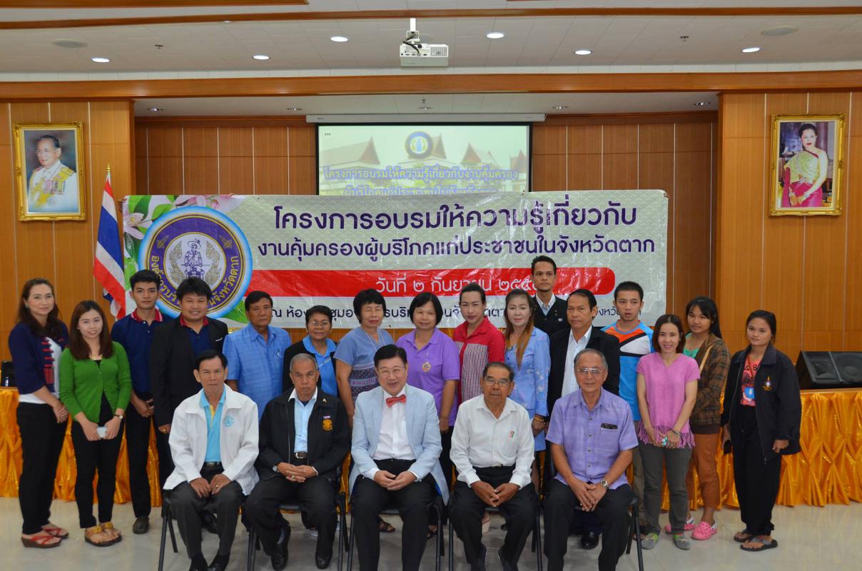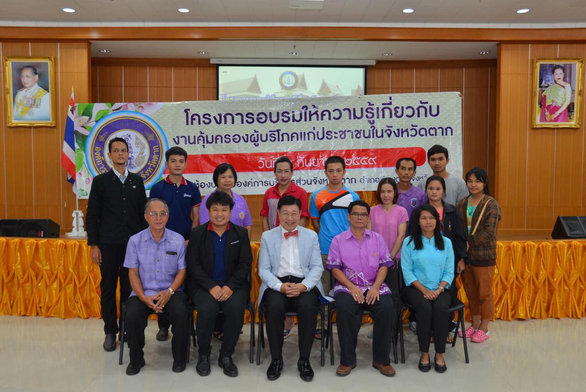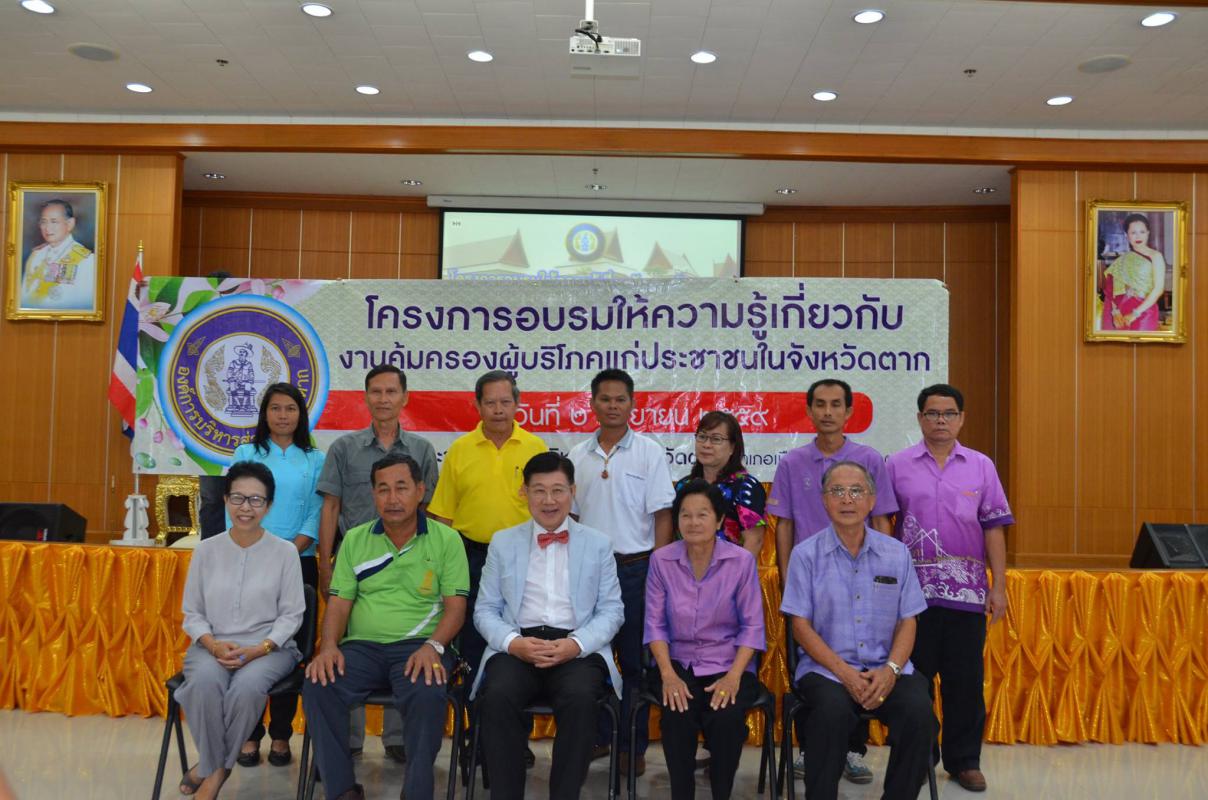 วันที่ 2 กันยายน 2559 นายณัฐวุฒิ ทวีเกื้อกูลกิจ นายกองค์การบริหารส่วนจังหวัดตากเป็นประธานเปิดโครงการอบรมให้ความรู้เกี่ยวกับงานคุ้มครองผู้บริโภคแก่ประชาชนในจังหวัดตาก โดยมีนายจักรี เพ็ญนิเวศน์สุข ประธานชมรมคุ้มครองผู้บริโภคจังหวัดตาก กล่าวรายงาน กลุ่มเป้าหมายของการอบรมในครั้งนี้ประกอบไปด้วย ชมรมคุ้มครองผู้ บริโภคจังหวัดตาก สำนักงานสาธารณสุขจังหวัด สำนักงานจังหวัดตาก สำนักงานพัฒนาสังคมและความมั่นคงของมนุษย์จังหวัดตากและสำนักงานส่งเสริมการศึกษานอกระบบและการศึกษาตามอัธยาศัยจังหวัดตาก โดยเนื้อหาของการอบรมในครั้งนี้คือการให้ความรู้ความเข้าใจแก่ผู้บริโภคให้ตระหนักถึงสิทธิของผู้บริโภคและกระตุ้นให้ตื่นตัวในการรักษาสิทธิของตนพร้อมทั้งสร้างกลุ่มเครือข่ายจิตอาสาในการรวบรวมประเด็นปัญหาสาธารณะในพื้นที่ นำไปสู่การแก้ไขปัญหางานคุ้มครองของผู้บริโภคอย่างรวดเร็ว