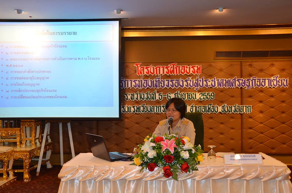 วันที่ 5 กันยายน 2559 นายกฤษณะ จันทร์อินทร์ ที่ปรึกษานายกองค์การบริหารส่วนจังหวัดตาก ได้รับมอบหมายจากนายณัฐวุฒิ ทวีเกื้อกูลกิจ นายกองค์การบริหารส่วนจังหวัดตาก เป็นประธานเปิดโครงการจัดอบรมผู้ประกอบการด้านการบริการท่องเที่ยวรองรับสู่ประชาคมอาเซียน ระหว่างวันที่ 5-6 กันยายน 2559 ณ ห้องเวียงวัง โรงแรมเวียงตากริเวอร์ไซด์ อำเภอเมืองตาก โดยมีนางสาวปาริชาติ หิรัญรัตน์ ผอ.กองแผนและงบประมาณ กล่าวรายงาน และได้รับเกียรติจากนางสาวหฤทัย สุวรรณโชติ เจ้าพนักงานปกครองชำนาญการ สังกัดที่ทำการปกครองจังหวัดตาก เป็นวิทยากรบรรยาย การจัดโครงการครั้งนี้มีวัตถุประสงค์เพื่อส่งเสริมเครือข่ายความร่วมมือด้านการท่องเที่ยวเตรียมความพร้อมและเสริมสร้างศักยภาพของผู้ประกอบการ ระหว่างองค์กรต่างๆ อาทิ องค์กรปกครองส่วนท้องถิ่น กลุ่มโรงแรมที่พัก กลุ่มผู้ผลิตสินค้า OTOP และสถาบันการศึกษา