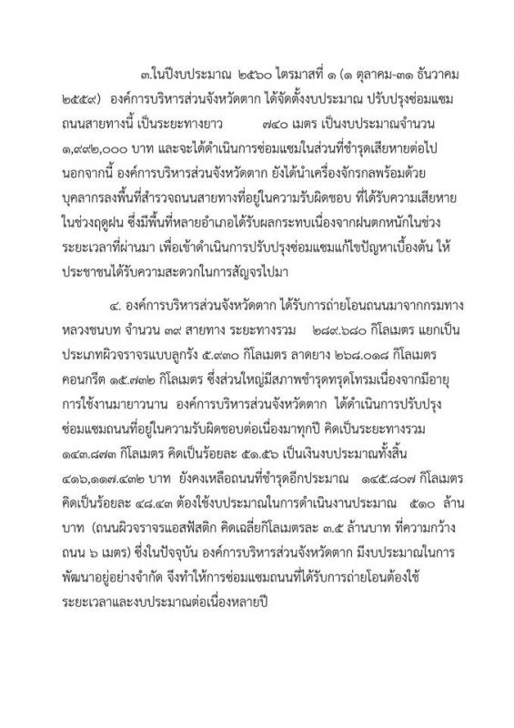 องค์การบริหารส่วนจังหวัดตาก ชี้แจ้งข้อเท็จจริง กรณีเรื่องร้องเรียนถนนสายทางบ้านต้นผึ้ง – บ้านตีนธาตุ อาเภอแม่ระมาด จังหวัดตาก