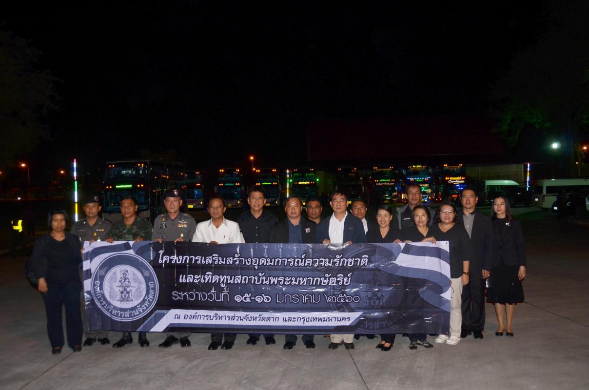 จังหวัดตาก ได้มอบหมายให้องค์การบริหารส่วนจังหวัดตาก ได้ดำเนินการจัดโครงการเสริมสร้างอุดมการณ์ความรักชาติ และเทิดทูนสถาบันพระมหากษัตริย์ ในวันที่ 15-16 มกราคม 2560 ณ โรงพละศึกษา 1,000 ที่นั่ง สนามกีฬาองค์การบริหารส่วนจังหวัดตาก โดยได้รับเกียรติจากนายวสันต์ ชำนาญจุ้ย รองผู้ว่าราชการจังหวัดตาก เป็นประธานในการจัดกิจกรรมโครงการ โดยมีวัตถุประสงค์เพื่อปกป้องสถาบันสำคัญของชาติให้เป็นที่ยึดเหนี่ยวจิตใจของคนไทยโดยคำนึงถึงประโยชน์ของชาติมาก่อนประโยชน์ส่วนตนหรือพวกพ้อง บนหลักการ “แตกต่าง แต่ไม่แตกแยก” และให้ประชาชนในจังหวัดตากได้มีโอกาสเข้าร่วมกิจกรรมในการแสดงออกถึงความจงรักภักดีต่อสถาบันพระมหากษัตริย์ ซึ่งมีรูปแบบการจัดกิจกรรมโครงการ คือ การจัดแสดงนิทรรศการเกี่ยวกับพระราชกรณียกิจ โครงการตามแนวพระราชดำริ ของพระบาทสมเด็จพระปรมินทรมหาภูมิพลอดุลยเดช การบรรยายโดยวิทยากรในหัวข้อ “สำนึกในพระมหากรุณาธิคุณหาที่สุดมิได้” การเดินทางไปศึกษาดูงานที่พิพิธภัณฑ์สถานแห่งชาติพระนคร และกราบสักการพระบรมศพเบื้องหน้าพระบรมโกศ พระบาทสมเด็จพระปรมินทรมหาภูมิพลอดุลยเดช ณ พระที่นั่งดุสิตมหาปราสาท โดยมีประชาชนเข้าร่วมโครงการจำนวน 750 คน ซึ่งได้รับความร่วมมือในการประสานงานนำประชาชนเข้าร่วมโครงการในครั้งนี้จากปกครองจังหวัดตาก องค์การบริหารส่วนจังหวัดตาก ขอขอบคุณ ทุกหน่วยงาน ทุกภาคส่วน ที่ได้มีส่วนร่วมในการดำเนินการจัดโครงการครั้งนี้ให้สำเร็จลุล่วงเป็นไปตามวัตถุประสงค์ทุกประการ