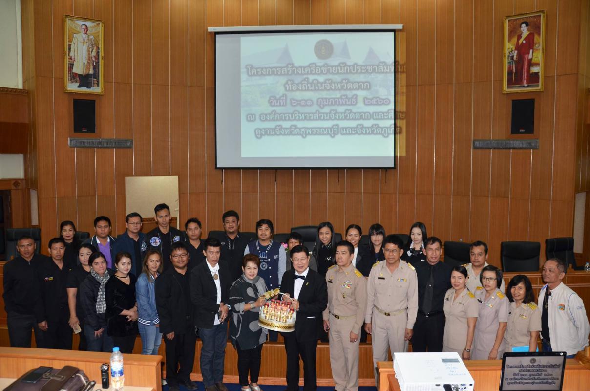 วันนี้ (6 กุมภาพันธ์ 2560) นายณัฐวุฒิ ทวีเกื้อกูลกิจ นายกองค์การบริหารส่วนจังหวัดตาก เป็นประธานเปิดโครงการสร้างเครือข่ายนักประชาสัมพันธ์ท้องถิ่นในจังหวัดตาก ประจำปีงบประมาณ 2560 ณ ห้องประชุมสภาองค์การบริหารส่วนจังหวัดตาก วัตถุประสงค์ในการจัดงานครั้งนี้ เพื่อเพิ่มพูนความรู้ความเข้าใจในข้อมูลข่าวสารที่เกี่ยวข้องกับการบริการสาธารณะและสร้างเครือข่ายนักประชาสัมพันธ์ท้องถิ่นและองค์การบริหารส่วนจังหวัดตาก มีกลุ่มเป้าหมายเป็นสื่อมวลชน (นักหนังสือพิมพ์ส่วนกลาง/ท้องถิ่น,ผู้สื่อข่าวโทรทัศน์,นักจัดรายการวิทยุ)และบุคลากรของหน่วยงานภาครัฐ เอกชน และขององค์กรปกครองส่วนท้องถิ่นจังหวัดตาก จำนวน 50 คน