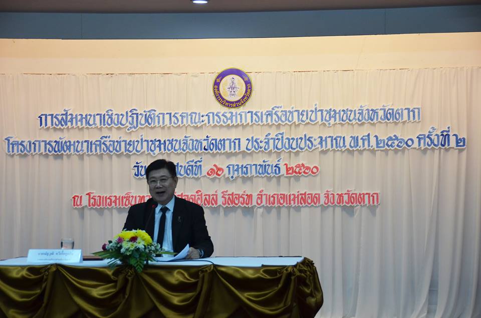 วันที่ 16 กุมภาพันธ์ 2560 นายณัฐวุฒิ ทวีเกื้อกูลกิจ นายกองค์การบริหารส่วนจังหวัดตาก เป็นประธานเปิดโครงการพัฒนาเครือข่ายป่าชุมชนจังหวัดตาก ประจำปีงบประมาณ 2560 ครั้งที่ 2 ณ โรงแรมเซ็นทาราแม่สอดฮิลล์รีสอร์ท อำเภอแม่สอด จังหวัดตาก โดยมีนายภาคภูมิ บูลย์ประมุข รองนายกองค์การบริหารส่วนจังหวัดตาก กล่าวรายงาน วัตถุประสงค์ในการจัดงานครั้งนี้ เพื่อสนับสนุนการบริหารงานของเครือข่ายป่าชุมชนระดับจังหวัด อำเภอและตำบล แลกเปลี่ยนประสบการณ์การบริหารจัดการป่าชุมชน บริหารเครือข่ายป่าชุมชนของจังหวัดและให้ความรู้ความเข้าใจเกี่ยวกับการบริหารจัดการป่าชุมชนที่ดี