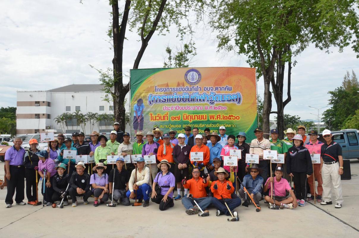 วันที่ 17 มิถุนายน 2560 นายชัชวาลย์ แสงจ้า รองนายกองค์การบริหารส่วนจังหวัด ได้รับมอบหมายจากนายณัฐวุฒิ ทวีเกื้อกูลกิจ นายกองค์การบริหารส่วนจังหวัดตาก เป็นประธานเปิดโครงการแข่งขันกีฬา อบจ.ตากคัพ (กีฬาวู้ดบอล) ประจำปีงบประมาณ พ.ศ.2560 ณ สนามวู้ดบอล องค์การบริหารส่วนจังหวัดตาก อำเภอเมืองตาก วัตถุประสงค์ในการจัดงานครั้งนี้ เพื่อให้ประชาชนมีสุขภาพที่แข็งแรงสมบูรณ์ และสร้างความสามัคคี รู้แพ้ รู้ชนะ รู้อภัย มีน้ำใจของนักกีฬา โดยมีประชาชนจังหวัดตากและหลายจังหวัดเข้าร่วมการแข่งขัน ทั้งหมด จำนวน 178 คน ในการนี้องค์การบริหารส่วนจังหวัดตากได้สนับสนุนงบประมาณในการจัดการแข่งขันครั้งนี้ จำนวน 100,000 บาท