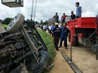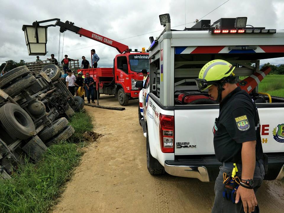 ศูนย์ป้องกันและบรรเทาสาธารณภัย อบจ.ตาก ได้รับวิทยุแจ้งจากศูนย์สั่งการตากสิน(EMS1669) ขอสนับสนุนอุปกรณ์เครื่องตัด-ถ่าง ช่วยเหลือผู้ติดภายในจากอุบัติเหตุรถบรรทุก 6 ล้อ เสียหลักพลิกคว่ำ บริเวณบ้านตลุกกลางทุ่ง ตำบลตลุกกลางทุ่ง จึงได้จัดส่งรถกู้ภัยพร้อมอุปกรณ์ตัดถ่าง และ จนท.ชุดปฏิบัติการกู้ชีพ-กู้ภัย อบจ.ตาก รีบไปยังที่เกิดเหตุ ถึงที่เกิดเหตุได้ให้การช่วยเหลือนำผู้ได้รับบาดเจ็บออกจากตัวรถ โดยมีทีมกู้ชีพมูลนิธิตากร่วมใจสงเคราะห์นำส่งโรงพยบาลสมเด็จพระเจ้าตากสินมหาราช