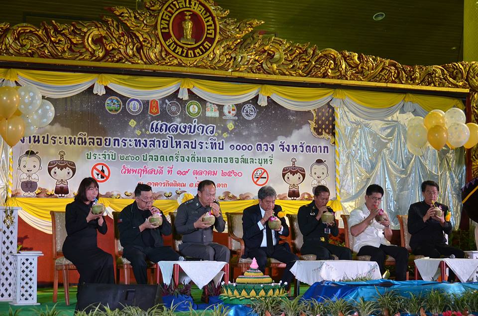 วันที่ 19 ตุลาคม พ.ศ.2560 นายธัชชัย ศรีสวัสดิ์ ปลัดองค์การบริหารส่วนจังหวัดตาก ได้รับมอบหมายจากนายณัฐวุฒิ ทวีเกื้อกูลกิจ นายกองค์การบริหารส่วนจังหวัดตาก ร่วมงานแถลงข่าวงานประเพณีลอยกระทงสายไหลประทีป 1000 ดวง ประจำปี 2560 ภายใต้ชื่อ “ประเพณีลอยกระทงสายไหลประทีป 1000 ดวง ปลอดเครื่องดื่มแอลกอฮอล์และบุหรี่” ซึ่งจะจัดขึ้นในระหว่างวันที่ 3 - 7 พฤศจิกายน พ.ศ.2560 ณ บริเวณริมสายธารลานกระทงสาย เชิงสะพานสมโภชกรุงรัตนโกสินทร์ 200 ปี