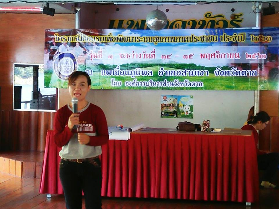 วันนี้ (14 พฤศจิกายน พ.ศ.2560) นายณัฐวุฒิ ทวีเกื้อกูลกิจ นายกองค์การบริหารส่วนจังหวัดตาก เป็นประธานเปิดโครงการฝึกอบรมพัฒนาระบบสุขภาพภาคประชาชน ประจำปี 2560 รุ่นที่ 1 ระหว่างวันที่ 14 - 15 พฤศจิกายน 2560 ณ เขื่อนภูมิพล อำเภอสามเงา โดยมีนายภาคภูมิ บูลย์ประมุข รองนายก อบจ.ตาก กล่าวรายงาน วัตถุประสงค์ในการจัดงานครั้งนี้ เพื่อเพิ่มพูนความรู้ความเข้าใจด้านสุขภาพของประชาชนและคนในชุมชน ผลักดันให้ประชาชนตระหนักในการดูแลสุขภาพมากขึ้น มีกลุ่มเป้าหมายเป็นผู้นำชุมชน ประชาชนในจังหวัดตากและอาสาสมัครสาธารณสุขอำเภอแม่ระมาด เข้าร่วมจำนวน 185 คน