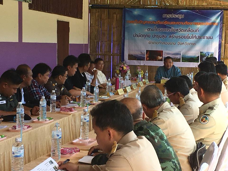 วันที่ 24 พฤศจิกายน พ.ศ.2560 นายภาคภูมิ บูลย์ประมุข รองนายกองค์การบริหารส่วนจังหวัดตากพร้อมนายฤกษ์ชัย จันทร์คำ สมาชิกสภา อบจ.ตาก ข้าราชการและพนักงานจ้าง อบจ.ตาก ได้รับมอบหมายจากนายณัฐวุฒิ ทวีเกื้อกูลกิจ นายกองค์การบริหารส่วนจังหวัดตาก ออกหน่วยให้บริการประชาชนตามโครงการจังหวัดเคลื่อนที่ "บำบัดทุกข์บำรุงสุข สร้างรอยยิ้มให้ประชาชนจังหวัดตาก" ประจำเดือนพฤศจิกายน 2560 ณ โรงเรียนห้วยนกกก(สาขาบ้านจ่อคี) หมู่6 ตำบลแม่หละ อำเภอท่าสองยาง จังหวัดตาก โดยการนี้ อบจ.ตาก ได้นำกิจกรรมโครงการประชาสัมพันธ์เคลื่อนที่ อบจ.ตาก พบประชาชน เพื่อเผยแพร่ประชาสัมพันธ์ผลการดำเนินงาน และความรู้เกี่ยวกับ พรบ.ข้อมูลข่าวสารฯ รวมทั้ง วารสาร แผ่นพับ เอกสารที่ให้ความรู้ในเรื่องต่างๆ ที่เป็นประโยชน์แก่ประชาชน และกิจกรรมการเล่นเกมส์ ตอบคำถาม รับฟังความคิดเห็นของประชาชน ให้ประชาชนได้รับรู้ข่าวสาร และรู้จัก และเข้าใจในบทบาทหน้าที่ของ อบจ.ตาก มากยิ่งขึ้น โดยมีนายเจริญฤทธิ์ สงวนสัตย์ ผู้ว่าราชการจังหวัดตาก เป็นประธานในพิธี ซึ่งมีหน่วยงานต่างๆ มาร่วมออกร้านให้บริการแก่ประชาชนมากมาย สามารถสร้างความสุข และรอยยิ้มให้กับพี่น้องประชาชนในพื้นที่อำเภอท่าสองยางได้อย่างแท้จริง